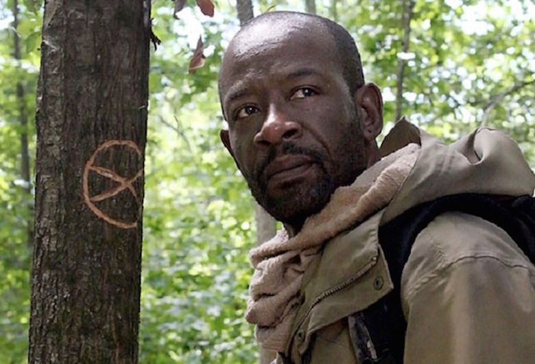 BACK TO THE FUTURE | Preparing for a journey to who-knows-where, Morgan led Eastman to his old campsite to pick up gear. There, Eastman challenged his friend to say the names of those that he'd loved and lost, and go through his aikido forms. Morgan didn't want to, not there, but Eastman insisted, adding, "Here's not here." Alas, what was meant to be a moment of catharsis went to hell in a flash when a walker intruded — and not just any walker but the zombified version of a kid Morgan had "cleared" before discovering Eastman's cabin. Morgan froze, Eastman intervened to save him, and what are the odds? He got bitten. Freaking out, Morgan attacked Eastman, and when his pal knocked him down, he went right back to saying, "Kill me." He wouldn't even accompany Eastman home, preferring to sharpen a new stick and run around the woods like a feral animal.