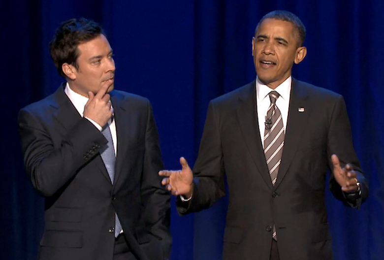 President Barack Obama makes his first appearance since Fallon's tenure began in 2014; Madonna performs.